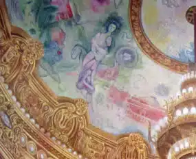 Her client’s favorite artist, Marc Chagall, painted the ceiling of the Paris Opera House in 1964. A modern addition to the Neo-Baroque style of the hall, the ceiling reflects both her client’s love of modern and contemporary art and his passion for Baroque music. The ceiling features images paying tribute to Chagall’s favorite composers, actors, and dancers.
