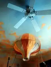 Acrylic mural on sheetrock, all walls and ceiling of bedroom and 1 wall of bath